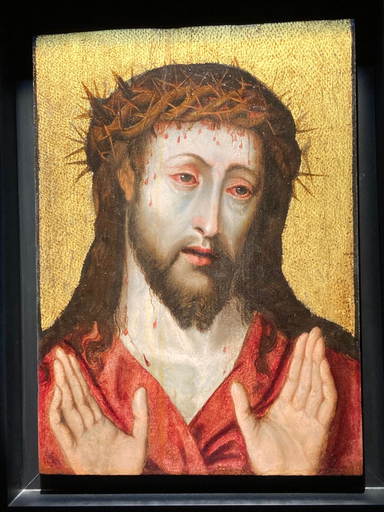 The second highlights for me how brilliant the artist was in showing Jesus with tears in his eyes. The tears are just so realistic and emphasise to me what art really is. The ability to convey in a picture an emotion that looks real.