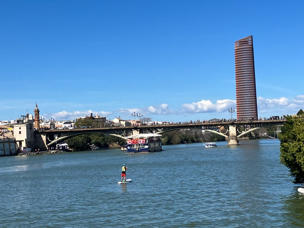 Like so many visitors and no doubt Sevillanas alike we then strolled along the riverfront in the sunshine, admiring the houses of Triana across the water, the outside of the Maestranza theatre and the Torre del Oro.