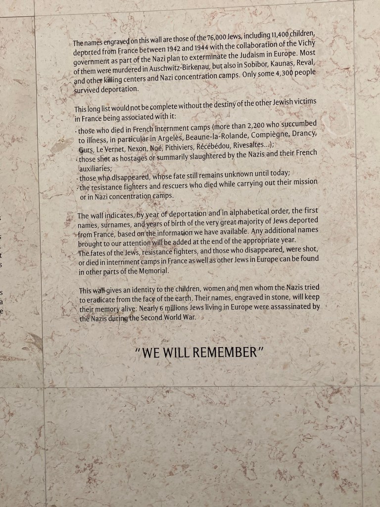 Last week in Paris, as part of our current adventure, we visited the Memorial de la Shoah – The Holocaust Memorial.