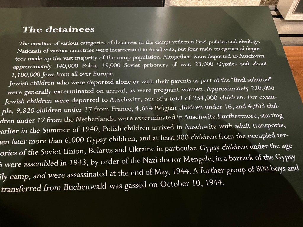 The museum doesn’t hide what happened, it is hard hitting and so it should be. New generations need to learn and understand about these atrocities. It’s impossible to take everything in on one visit and to be frank your emotions, like mine, may get the better of you. I’ve attached three photos that give a small insight into the journey the Jews suffered.