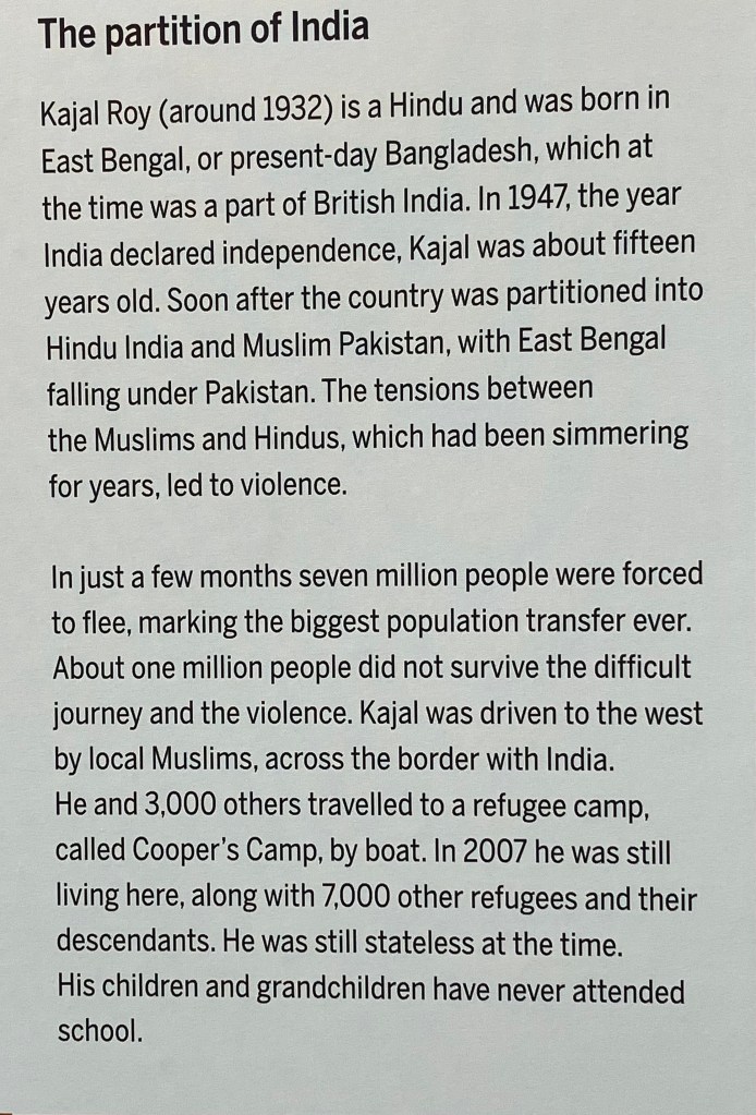 In the 19th century new waves of migration culminated in the flows of refugees and the forced deportations of entire populations during the two World Wars in the 20th century. Travel has become easier than ever, due to globalisation, modern transport and communication and so through the lives of these people you are brought right up to date with the modern day immigration crisis. One of these twenty people was Kajal Roy and you can read his story below.