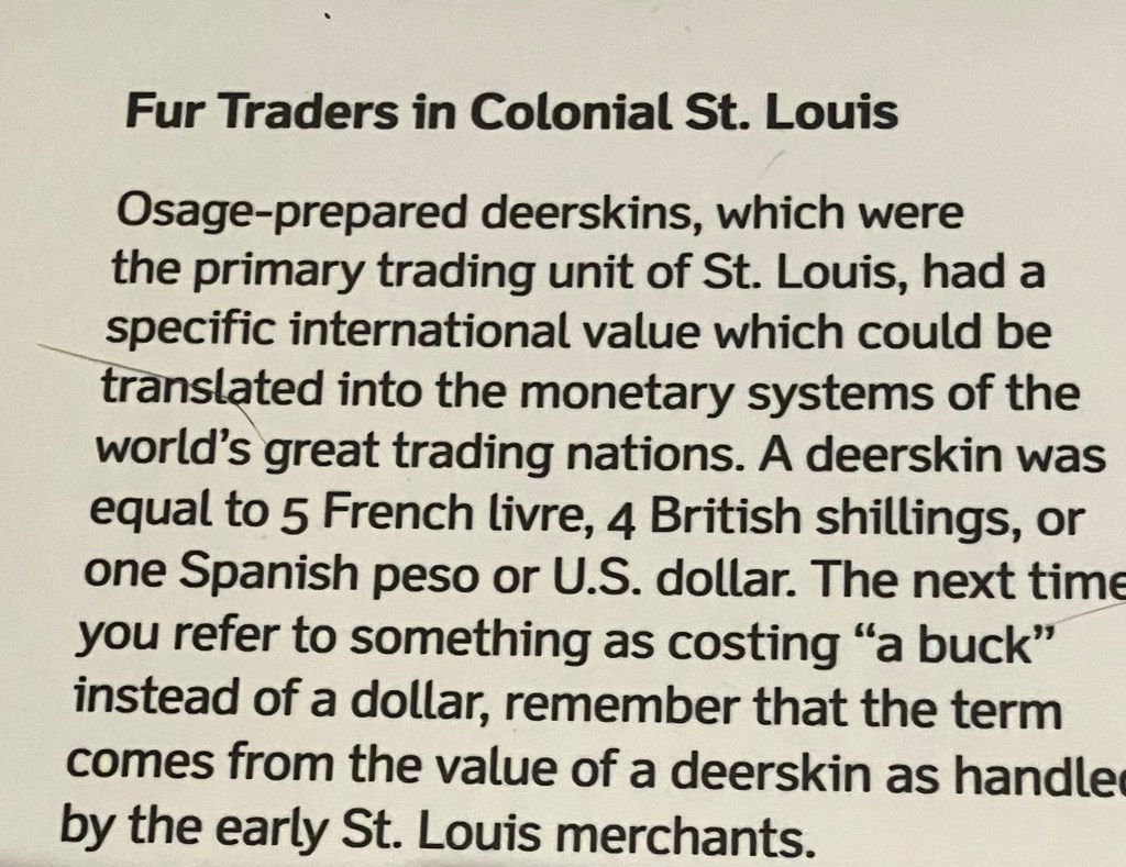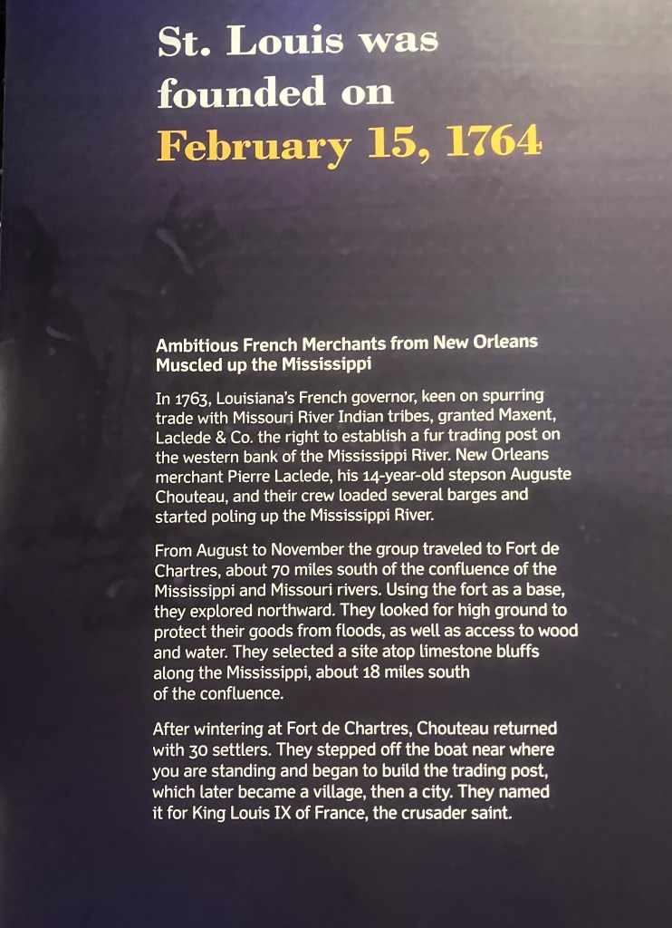 The museum tells us “that prior to the Louisiana Purchase, French merchant Pierre Laclede and Auguste Chouteau selected an ideal site to build a commercial village, which they named St. Louis. Near the confluence of the Missouri and the Mississippi, St. Louis became a hub for trade with regional American Indian tribes such as the Osage. French officials, Spanish administrators, and entrepreneurial citizens arrived and built the village into a significant trading post and the political capital of the region. St. Louis quickly became an affluent and cultured place due to its natural advantages and the people who came here to make their fortunes.”