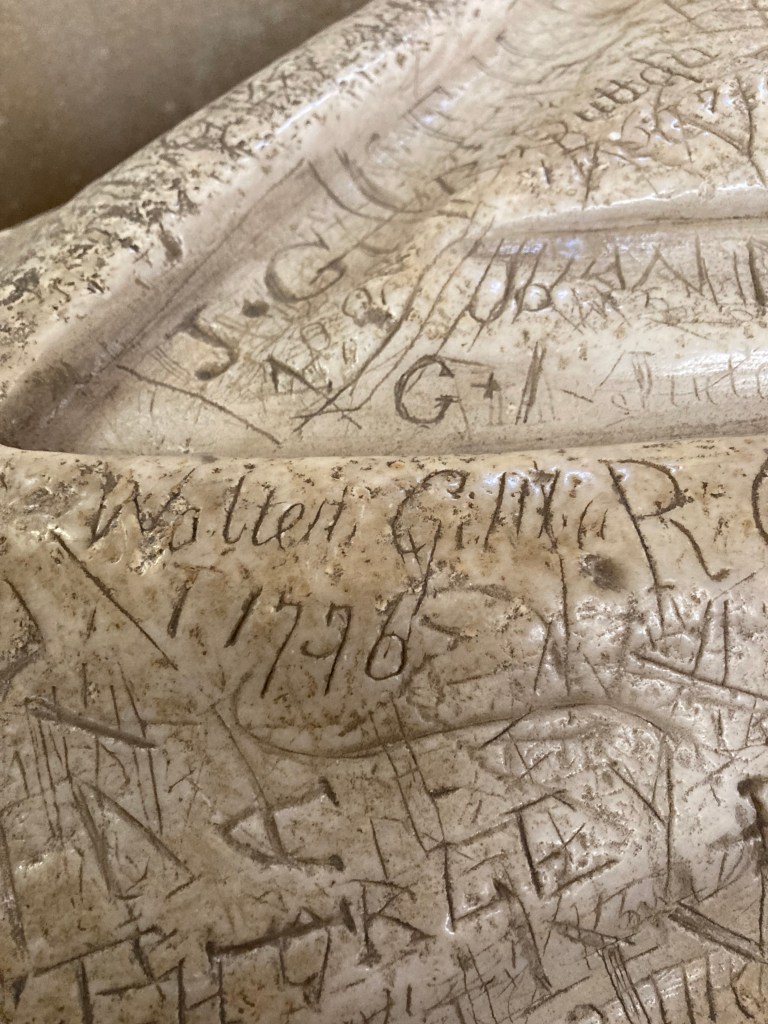 The tombs and monuments around the cathedral include one tomb dating back to the 17/18th century which shows graffiti existed even then with people inscribing their name and date on it.