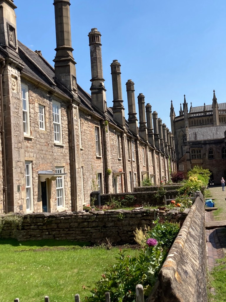 I wandered right to the end where the chapel and library are situated and I must admit a few members of the Wells Cathedral School in their dark blue uniforms made it feel again a bit like an elite university city.