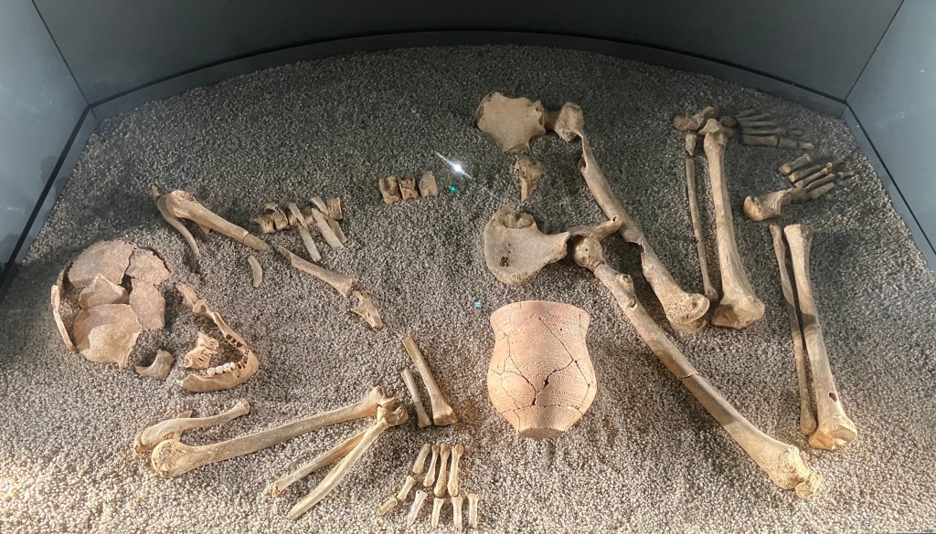 Starting our journey through the museum, aided by an audioguide, I am firstly impressed to discover that people existed in this area from around 900,000 years ago, a period known as the Palaeolithic (Old Stone Age). There was extreme climatic change at this time with ice sheets advancing and retreating and sea levels rising and falling. Britain was joined to mainland Europe during the coldest spells.