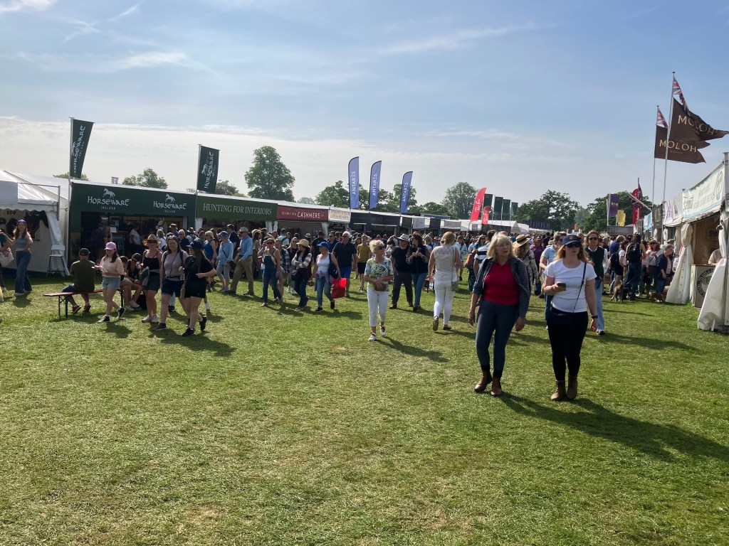 The cost is £5 per dog per hour up to a maximum of four hours. This turns out to be my final astonishment. Not the cost or even the noise emanating from within but why? Just why? Badminton is full of dogs on leads and always has been. I don’t really understand why you would give your dog the excitement of being here and then lock it up in a dog crate? Wouldn’t the poor canine have been better off at home?