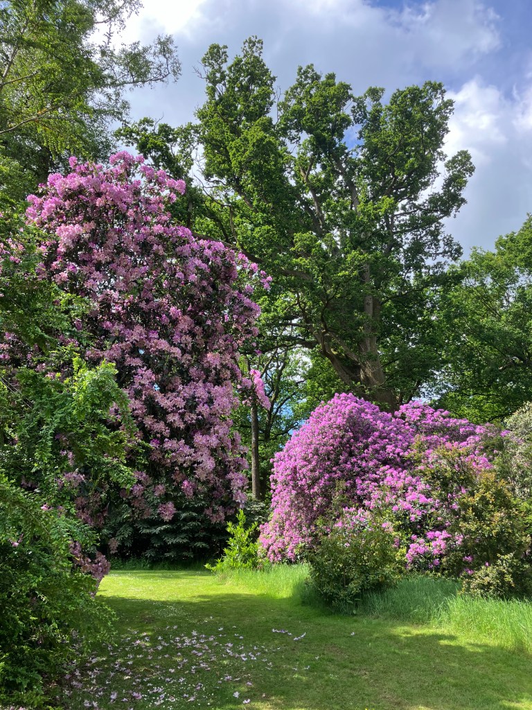The Woodland Gardens cover 30 acres and focus on all the beautiful Spring flowers and shrubs that epitomise this season in the UK. We have missed the bluebell season which sees these traditional blue flowers poke through the grassy areas in abundance. The rhododendrons and azaleas are in full bloom showing their wondrous colours alongside the woodland pathways. The sweet, citrusy floral smell of magnolia trees permeate the air.