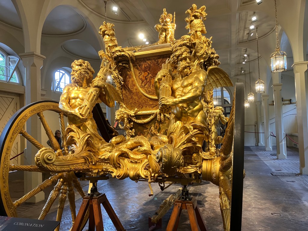 The piece de resistance of the carriage display, however, has to be the Gold State Coach which is displayed in it’s own separate cavernous space to allow visitors to view it as if in action complete with horses and grooms.
