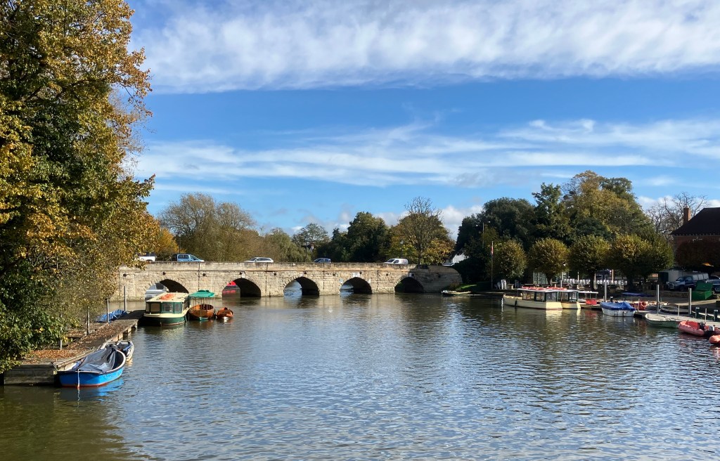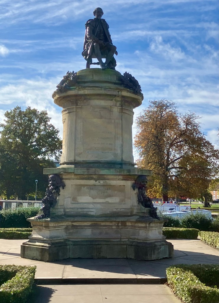 It was lovely to arrive at the river amidst the sunshine and autumnal gold of the trees. This was originally an area of land where the townspeople grazed their animals, and the Canal Basin was the end of the Stratford-to-Birmingham canal, completed in 1816.