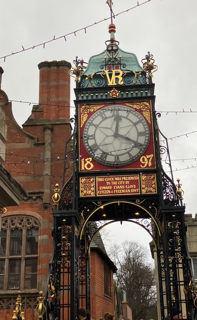 The Eastgate arch above which stands the Eastgate clock is the site of the original entrance gate to the Roman fortress of Deva Victrix. The current Eastgate dates back to 1768 with the clock being added in 1899 to celebrate Queen Victoria’s Diamond Jubilee. It features a face on all four sides along with the year 1897 and the initials VR appearing above and below each clock face.