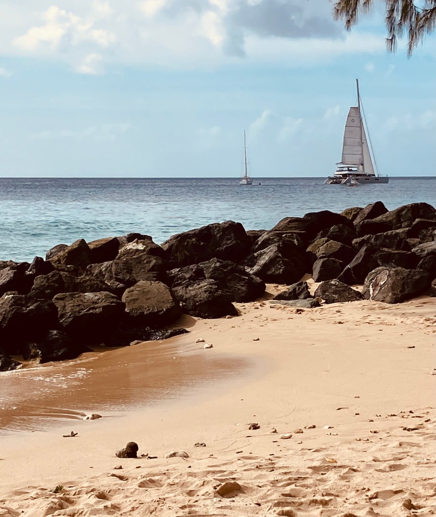 Where we returned for a second visit, finding all the sunbeds taken we walked around the corner to the left (as you look at the sea) and ambled across the beach. There are two distinct areas with sunbeds and umbrellas attached to two hotels where you cannot sit unless you are a resident. The beaches are all public in Barbados it’s just the hotels that don’t want you to know this!