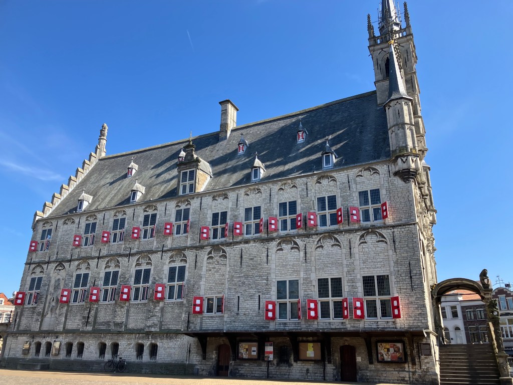 It is truly remarkable to behold, built in late Gothic style with sculptures on the facades based upon Lords and Ladies of the region at the time and beautiful red and white shutters. This is the oldest Gothic city hall in the Netherlands and looks like something straight out of a fairytale!