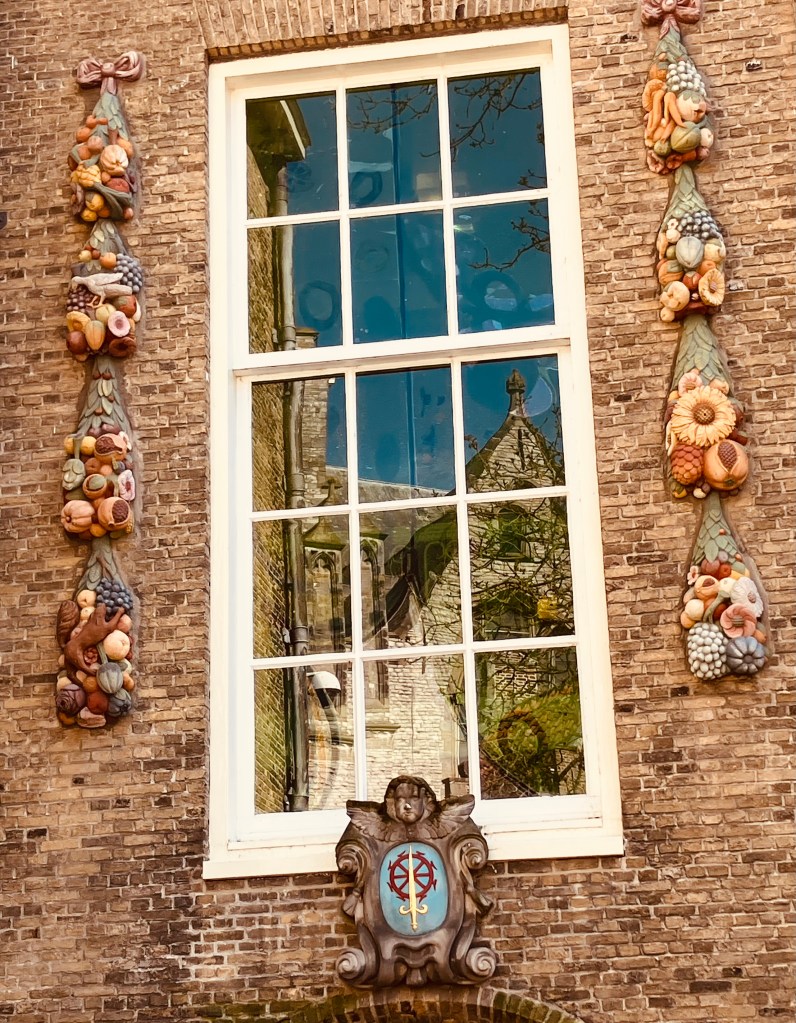 Originally established to care for the poor the buildings that now make up the museum were once a hospital, the St Catherine’s Guest House, a pharmacy and a chapel before being formulated into the main hospital for the city. Whilst we chose not to visit the museum I was entranced by the collection of sculptures that can be seen on the outside wall of the museum. These were collected from other buildings in Gouda which have now disappeared.