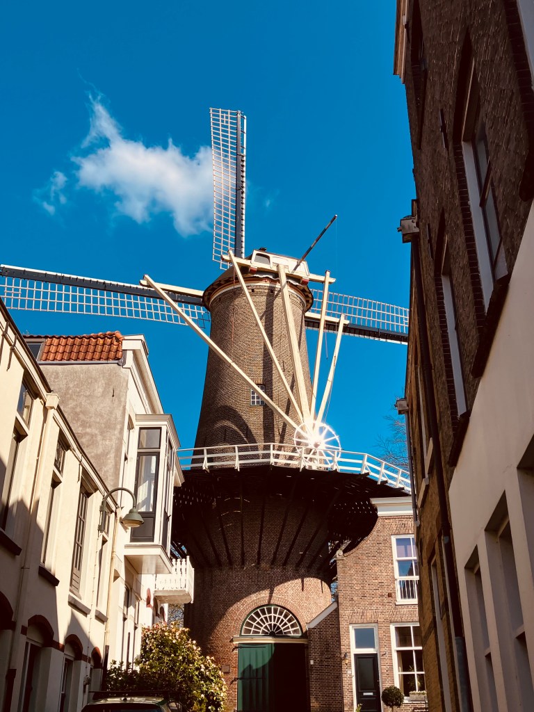 Eventually, some 200 years later it was torn down by the city council and permission was given to build the windmill that stands on the site today. It was here that we learnt that every windmill in The Netherlands has a name in this case “t Slot” or The Lock referring to the locks that allowed passing boats to access the inner city from the river we had just passed.