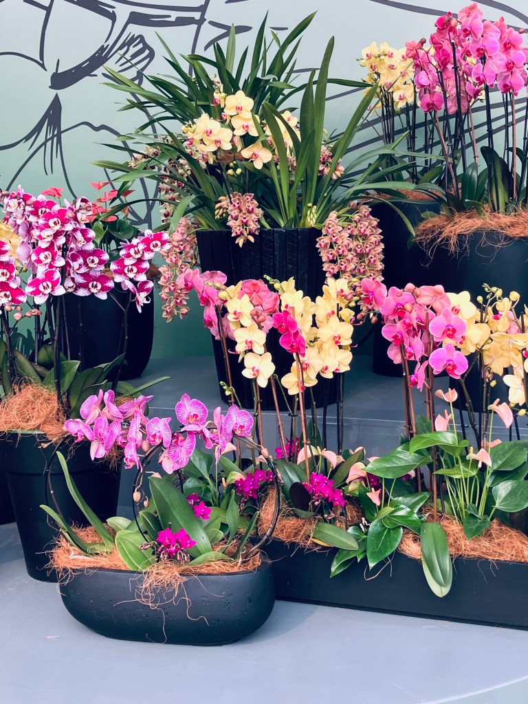 I still haven’t repotted my orchids at home and arranged them in these type of displays despite buying large pots, orchid compost and straw for the purpose!