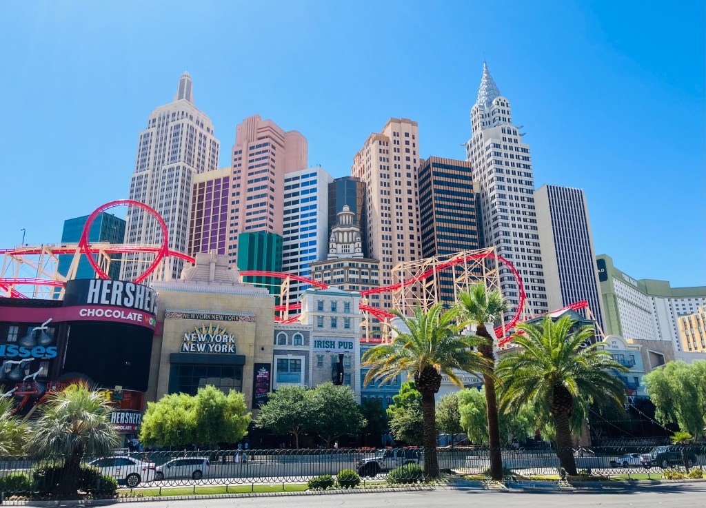 Travelling around the hotel tower is the famous Big Apple Coaster which reaches a top speed of 67 mph and is also known for its 203-foot drop and the world’s first 180-degree “heartline” twist and dive maneuver.