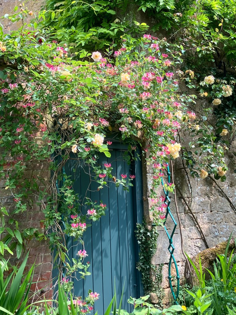 There is also a rustic arch covered in honeysuckle and roses and tucked away on the left of the pathway as you walk back towards the rear of the house a beautiful blue door smothered again in roses which I personally loved.