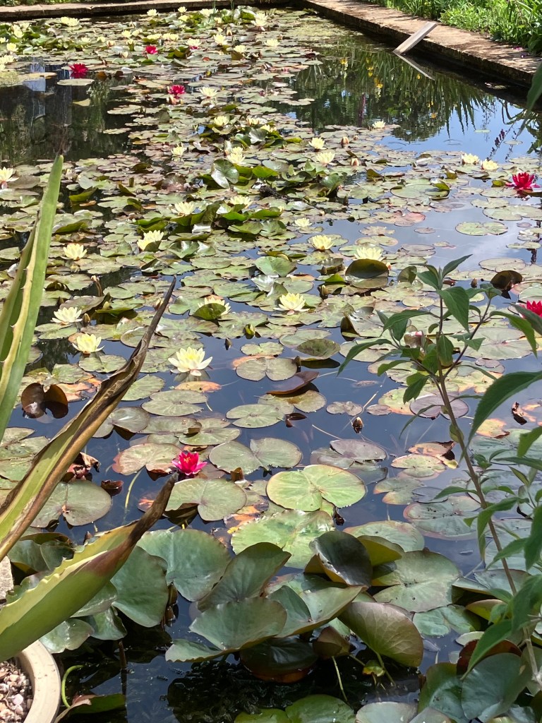 This large, rectangular pool, was originally designed as a swimming pool, with a deeper end for diving. It’s no longer used for swimming and instead serves as a reflective water feature, mirroring the surrounding hedges and trees. The pool is a prominent part of the garden, framed by tall box hedges with topiary birds. The water, itself, I felt was a bit green and murky.
