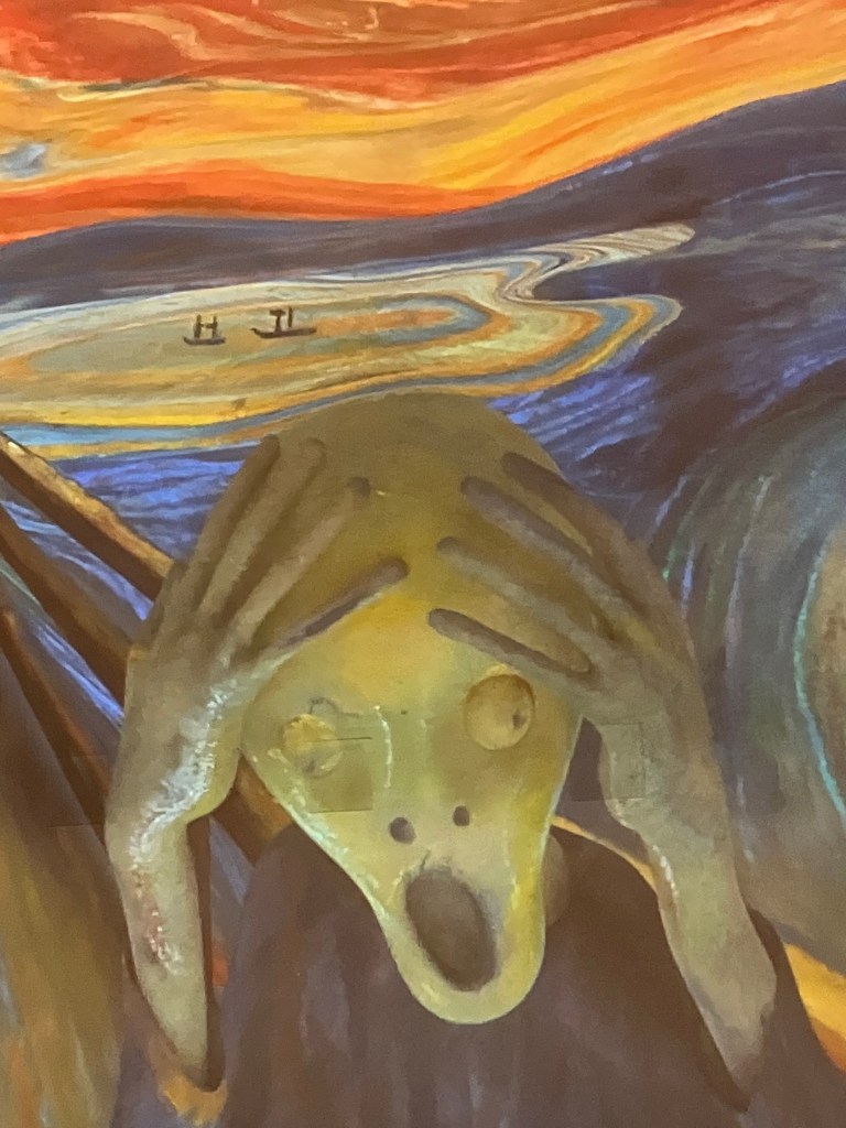 Edvard Munch “The Scream’, Max Ernst “The Fireside Angel” and Hieronymus Bosch “The Garden of Earthly Delights”.