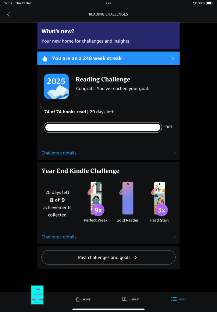 Even taking into account “my guilt” I have just hit my target of 74 books this year!