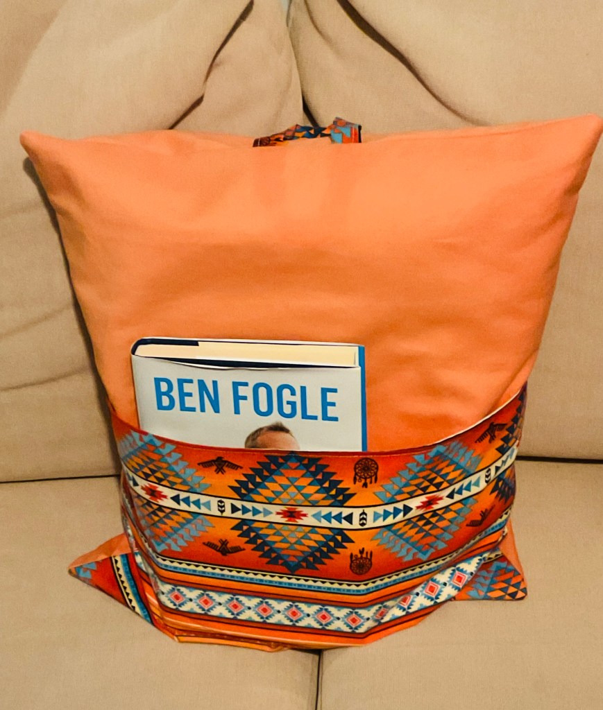 Hubby and I turned our small bedroom into a “den” and it provides a great place to curl up on a comfy sofa to read or listen to vinyl music on a stand-a-lone stereo. There are a few knick knacks decorating the shelves etc including this lovely reading pillow that I picked up on our travels. We were driving the Eastern Seaboard of the USA and stopped off to explore the Outer Banks whilst in North Carolina and dropped into the Native American Museum there: