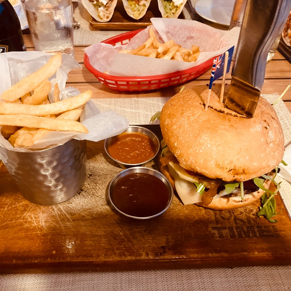 We skipped a starter and went straight to mains with Hubby choosing the Aussie Burger and me the tacos.
