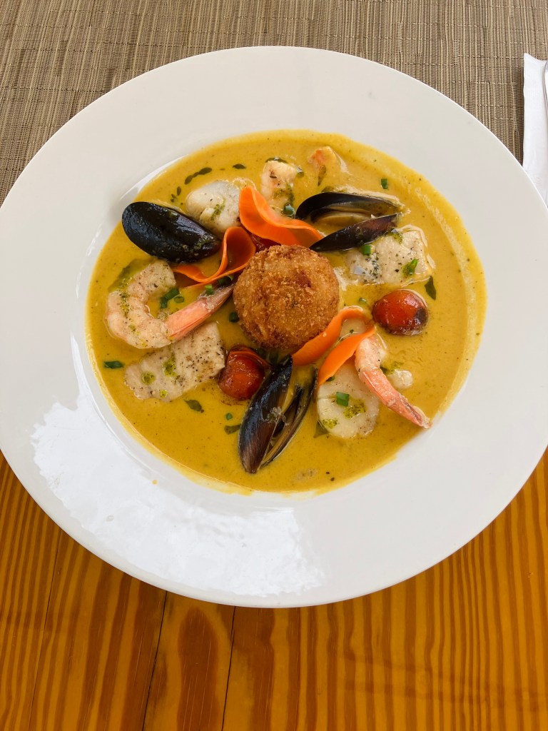 We were seated on the terrace, where the views stretched across the water, with boats gently drifting by. The atmosphere struck a perfect balance—refined without feeling formal. The menu reflects this as well, combining Caribbean flavours with international influences, with a particular emphasis on fresh, locally sourced seafood.